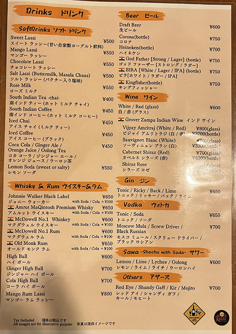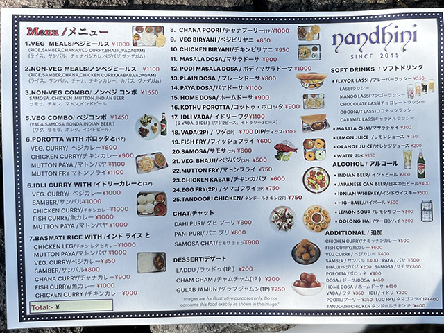 テーブルに置かれたメニューを見るとミールスはなんと2,100円!