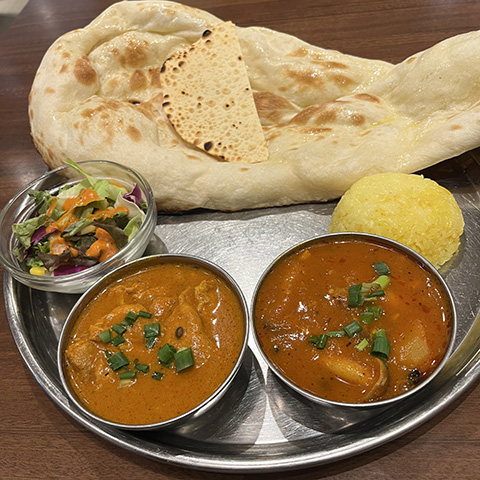 メニューにはミールスはないのでちょっとがっかりしながらダブルカレーセット 1,200JPYを注文。
