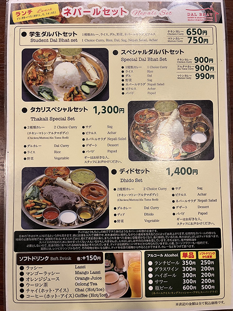 学生ダルバートセットというメニューがあるあたり近所にネパール人留学生でもいるのだろうか。