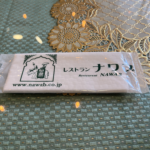 料理を待つ間テーブル周りを眺めていると使い捨ておしぼりに印刷されていたのは「レストラン ナワブ