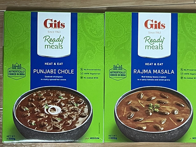 これは昨日初めてAmbikaで買って来たんだけど見た目の似てるPunjabi Choleとどう違うんだろうと食べてみるとこちらはspicy tomato and onion gravyと書かれているように確かにトマトソース味。辛いけど。