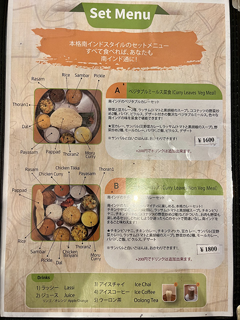 メニューのトップに載っていたので迷わずにベジミールスを注文。