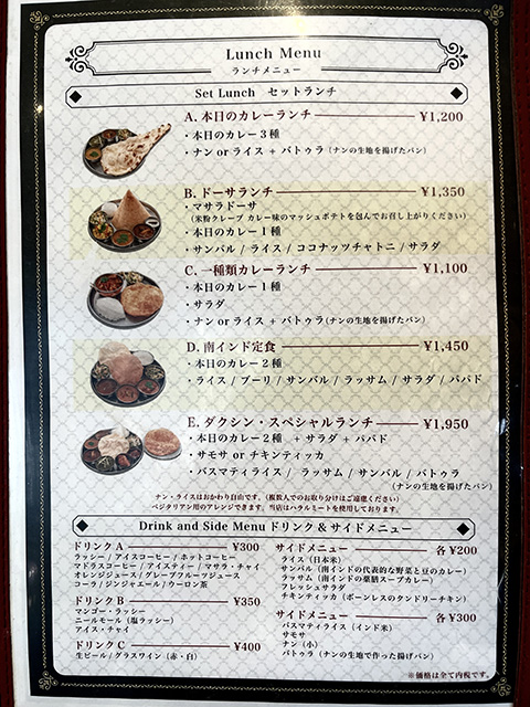 いつものDセット=南インド定食は、3年前に1,260JPY、昨年は1,350JPYとじわじわ上がってきたものの、ゴージャスな大手町店の1,850JPYと比べれば1,450JPYはまだだいぶお得感。