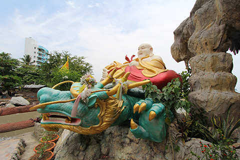 ビーチがありそうなのでそこへ向かう道を入っていったが、着いた先にあったのはその名の通りの亀山寺で奉られていたのは乗っている亀同様、金色に輝く仏像。