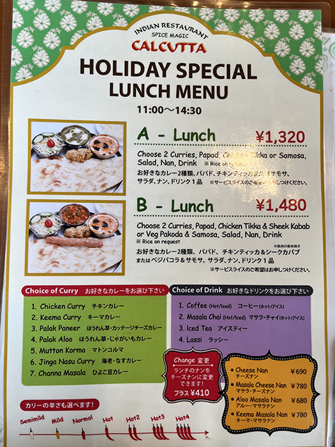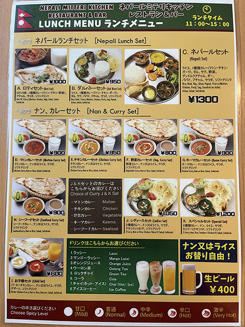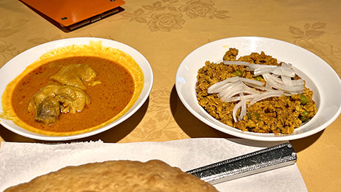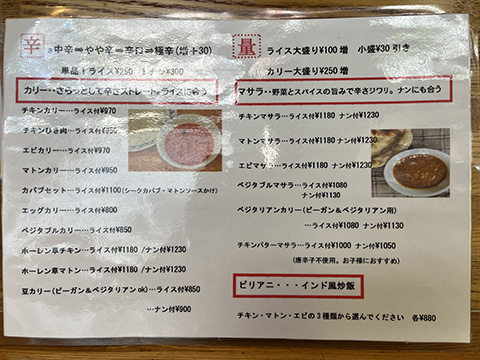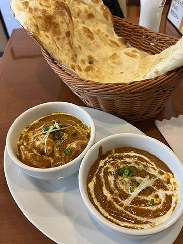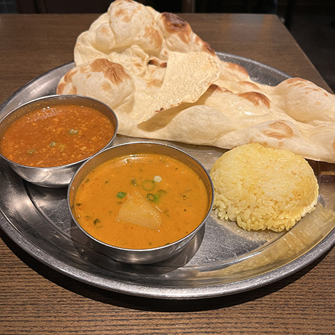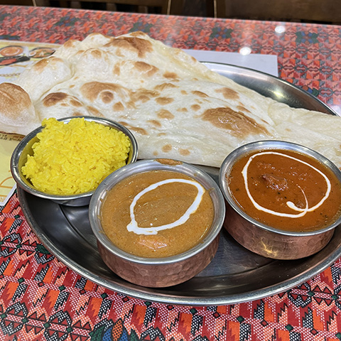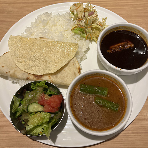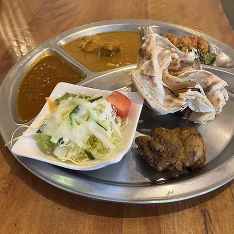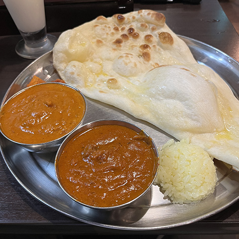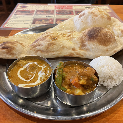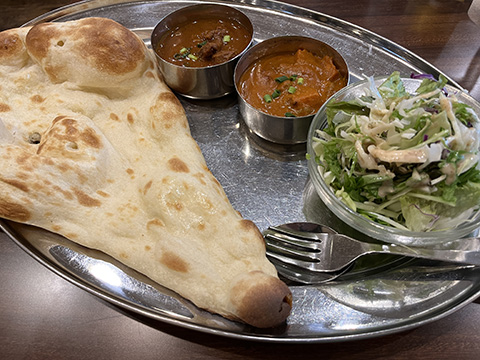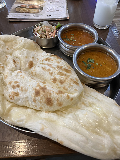 スパイシーにしてくれと言った割りにはそれほど辛くなかったが、どちらのカレーもクミンの香りがよかった。