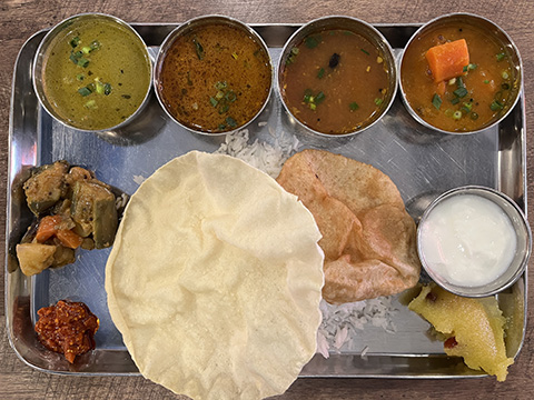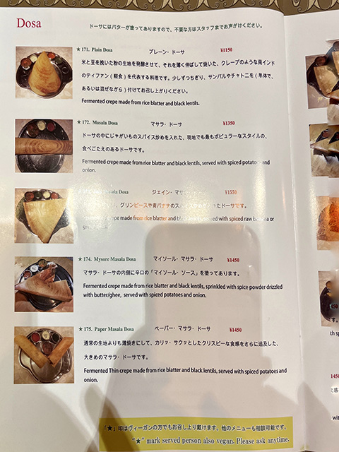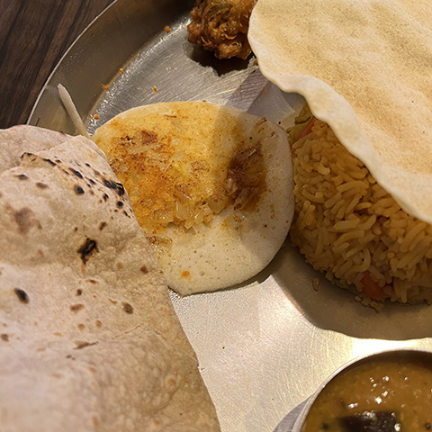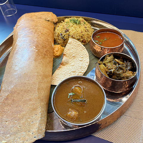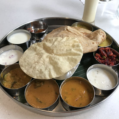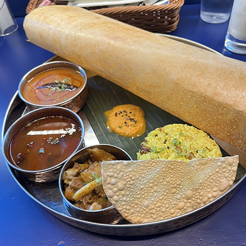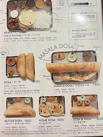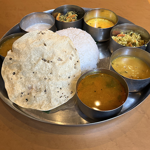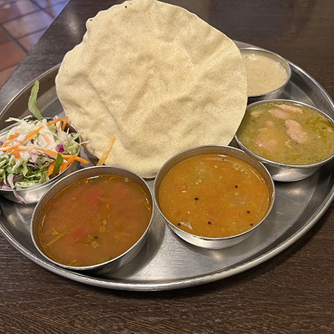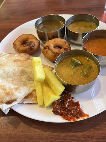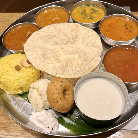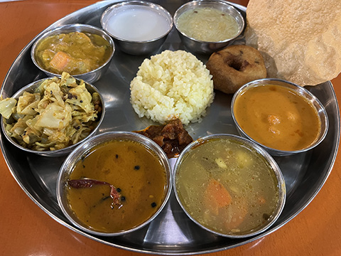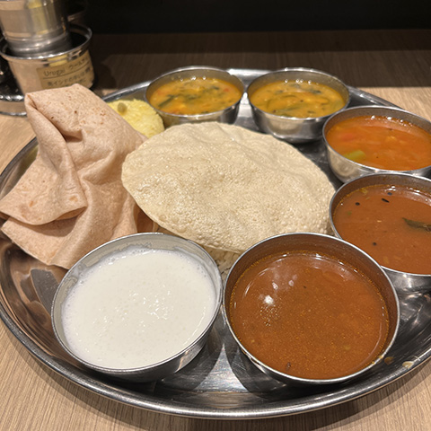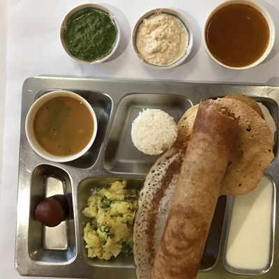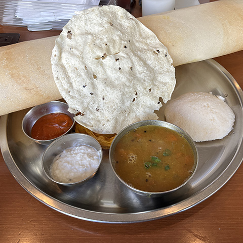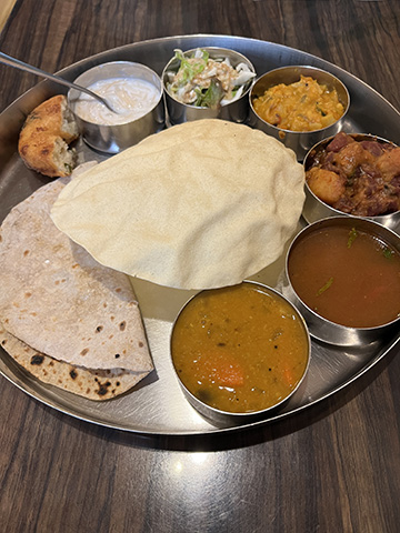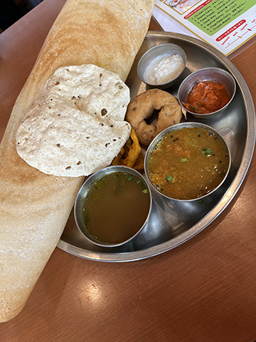 マサラドーサの中身とドーサが別々に出されたがイドリー、ヴァーダ、パパッドが出てくるあたりは南的。
