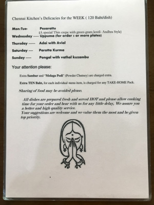 以前はたしかソイ19にあったはずだが先日のSaravanaa Bhavan同様、「バンコク 南インド料理」でググったら出て来た。