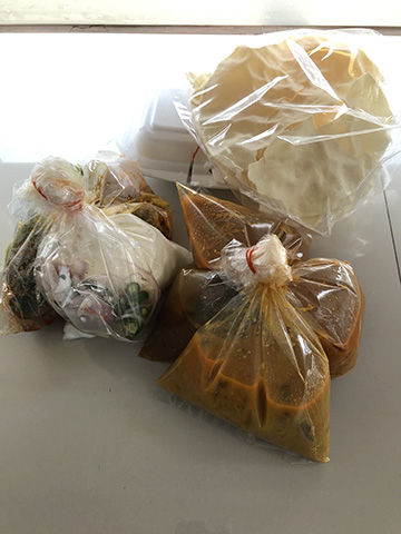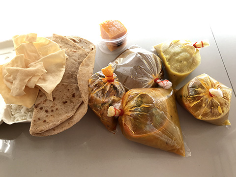 Saravanaa Bhavanは一つ一つ容器に入ってくるけど、ここは全てビニール袋でどうやって食べるか悩んでしまった。