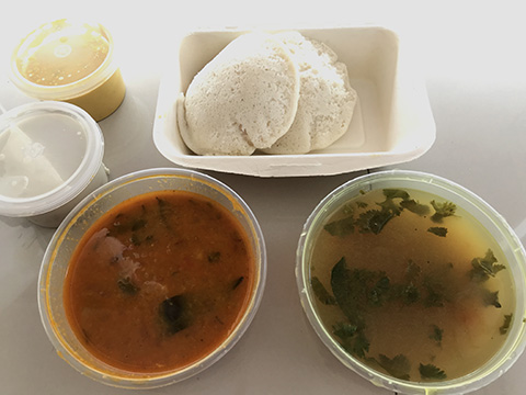 Saravanaa Bhavanは料理一つ一つが蓋付き容器に入っているのだがこちらはビニール袋なので食器が必要になるのが面倒。