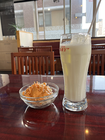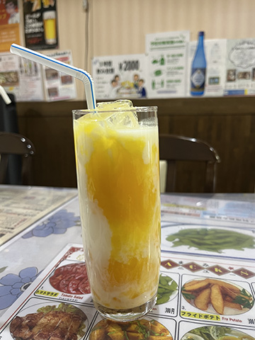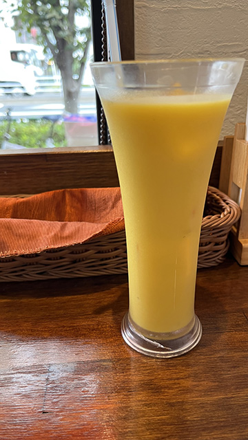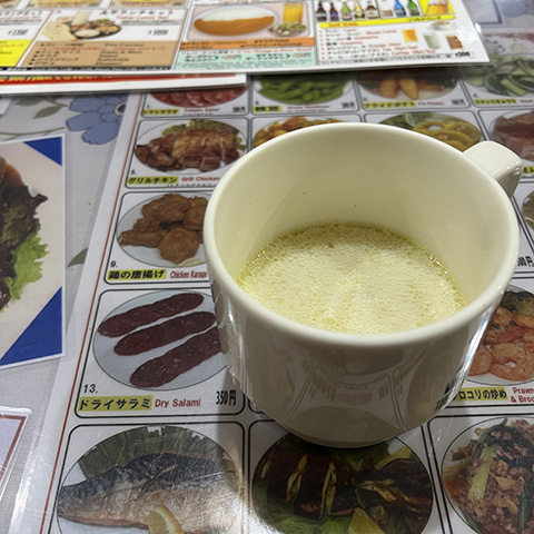 ターリーは300THBと高めだがシナモンが振り掛けられたソルトラッシーは60THBとお得だった。