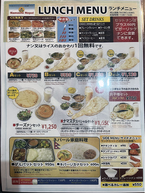 インド料理店は入れ替わりが激しく閉店していることも多いので来店の際は別途確認を。