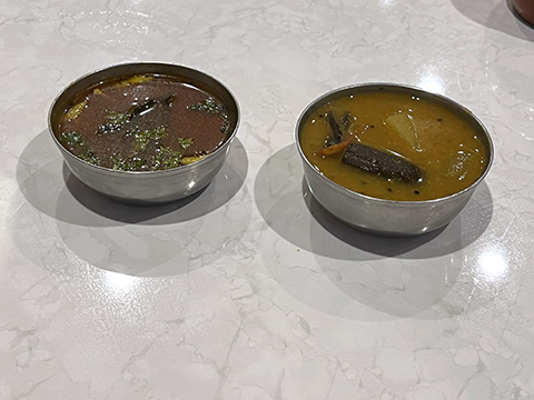 ザブジもラッサムも素朴な味だがSaravanaa Bhavanのほうが好み。