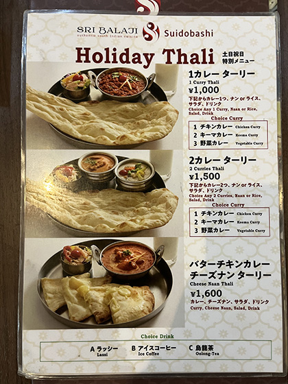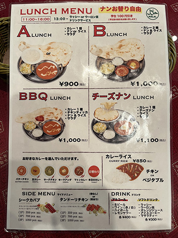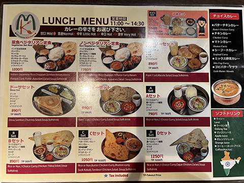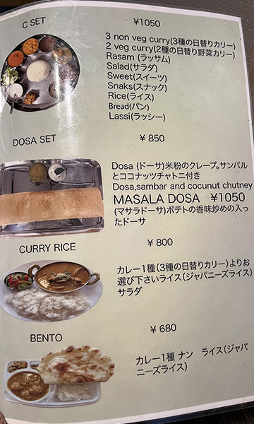 看板にはパンジャブ(北西)&南インドベジレストランと書かれていてカテゴリーは微妙。