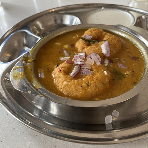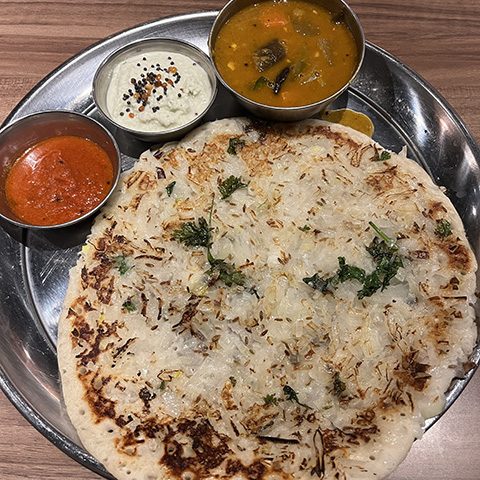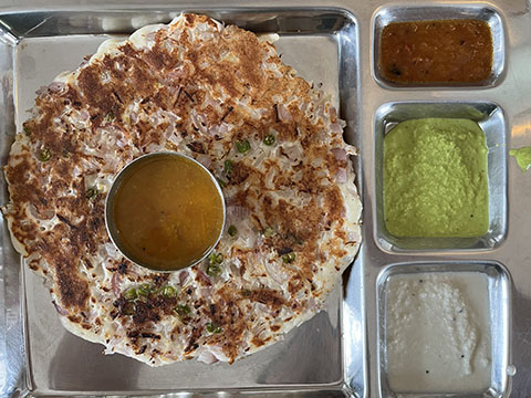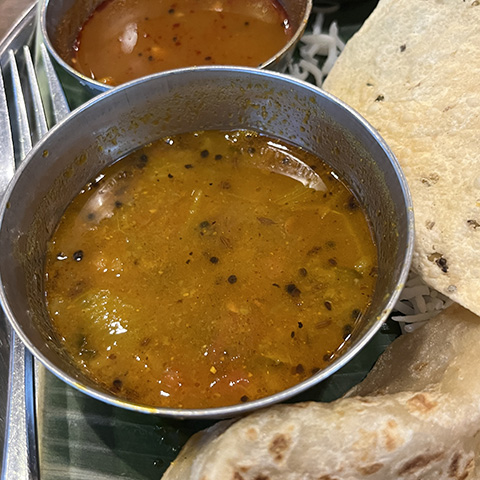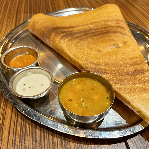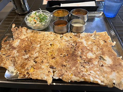南インド料理はどうしてもSaravanaa Bhavan基準で考えてしまうのだけど、じゃがいもがドロドロに溶け込んだサンバルは塩味がちょっと強めで味は好み。