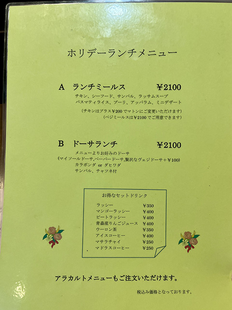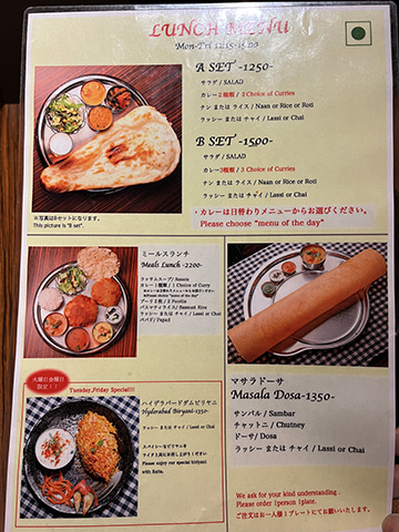 どこか近くに南インド系のインド料理屋がないかと入ってみた店。