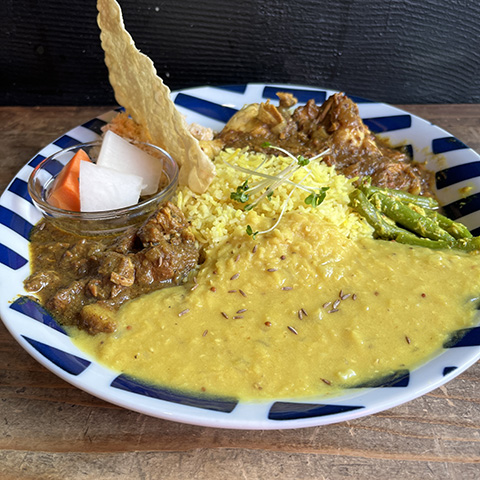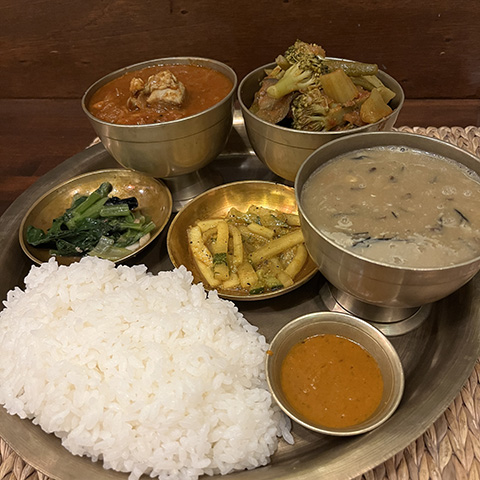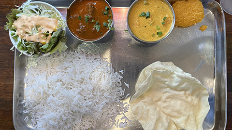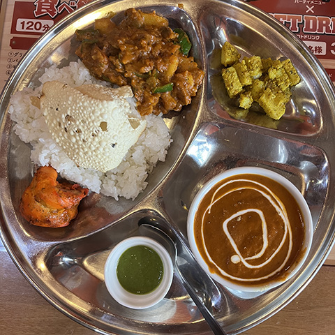 カレー6種、ライス、パパッド、カード付きで220THB