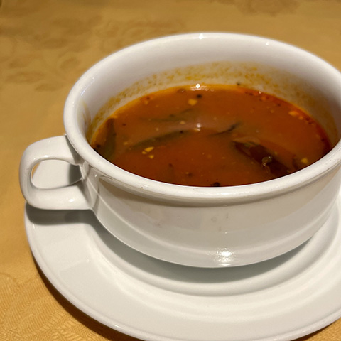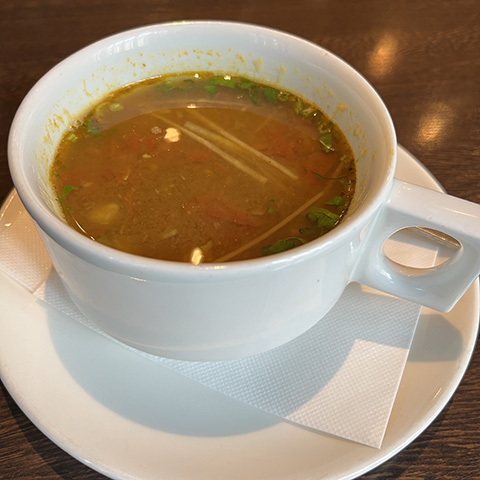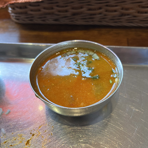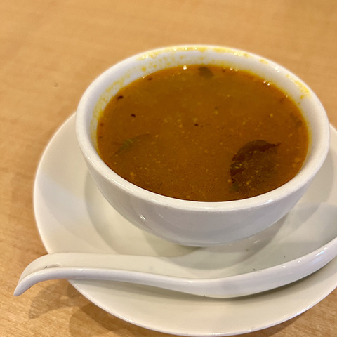 ラッサムは香辛料が独特でニンニクきつめ。
