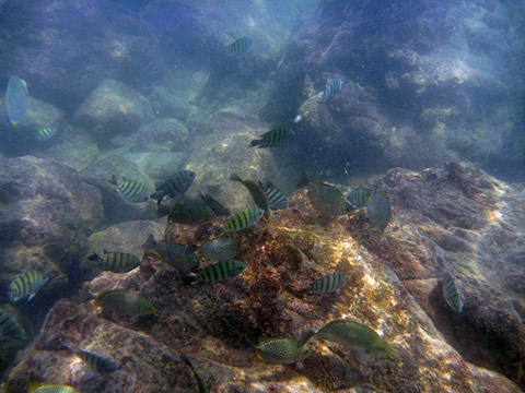 岩は多いが魚の種類はそれほど多くなかった。
