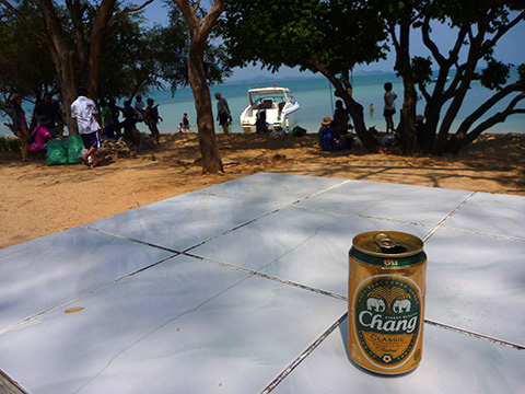 やることもないので売店でビアチャーンを買って石のベンチに腰掛けて飲んでいると「昼食の準備をしますので」と今度は別な船のガイドらしき男に追い払われる。