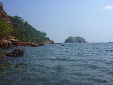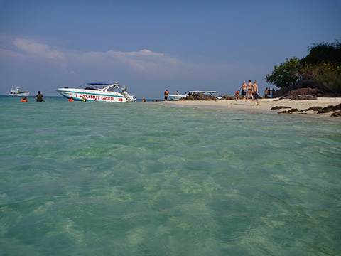 その先の砂浜になん艘かのモーターボートが接岸していたがそれをわき目にみながら近くの小さな島沖にボートは止まった。