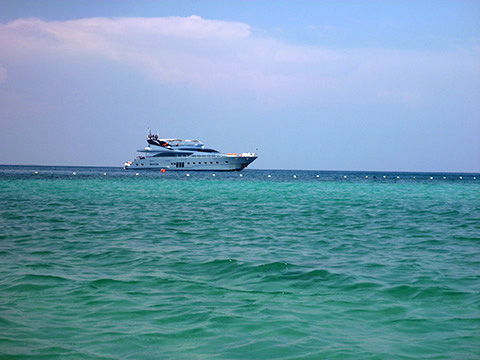 すぐ目の前には007にでも出てきそうな大型クルーザー。
