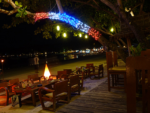 月がきれいだったので部屋に戻る途中でホテルのレストランのテラスでもう少し飲んでいくことにした。