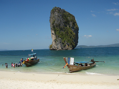 前回同様プラナンビーチに行こうか、それとも沖合のゴ・パダあたりに行こうか、その場合ツアーで行くか乗り合いのロングテイルボートで行くかと昨晩考えたが、結局ロングテイルボートでゴ・パダに行くことにした。