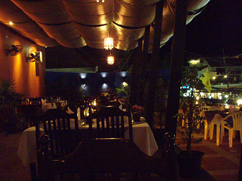 サムイでもパタヤでももちろんプーケットでもシーフードレストランの店頭にはたいがい氷を敷き詰めたディスプレイ用の船にホイナーンロム(牡蠣)やホイマレーンプー(ムール貝)、ホイグレーン(赤貝)などの貝類が並んでいるのに、ここではほとんど見かけずたまにホイマレーンプー(ムール貝)が申し訳程度に置いてあるくらい。
