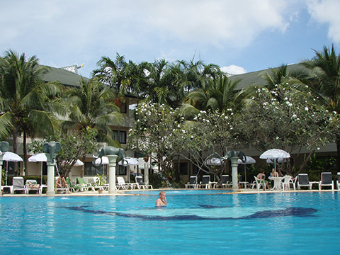 ホテルに戻り12時のチェックアウトを30分だけ延ばして欲しい旨をレセプションに伝えてからプールサイドに出る。