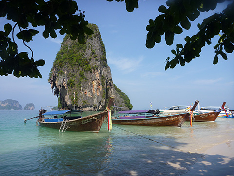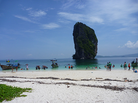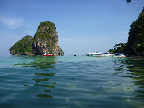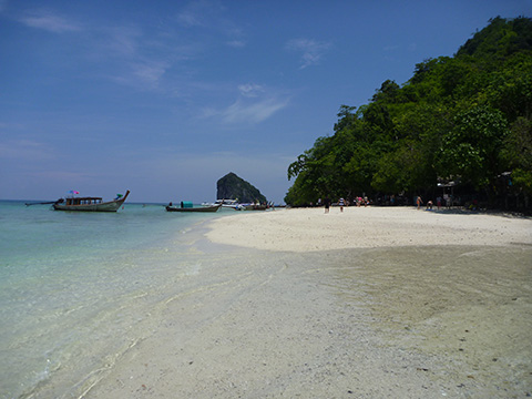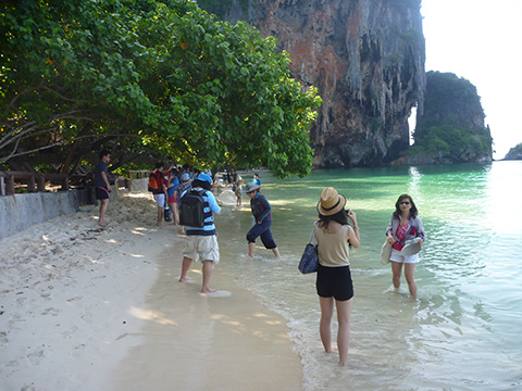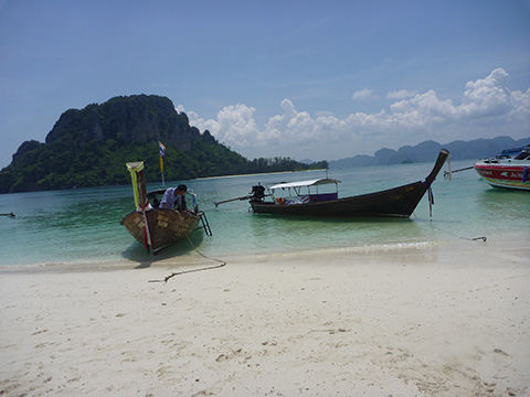 何度も来たことのあるこのビーチは、絶壁に囲まれているためボートでしか来るすべがなく、アオナンとは打って変わって白い砂浜と青い海、人の少なさで最初にアオナンからロングテールボートでたどり着いた時は儲けものと思ったものだったが、、、、