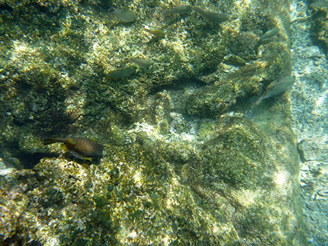 こういうふうに浜辺から岩場が近いというのはスノーケリング初心者にとっては好ポイントなんだろうな。