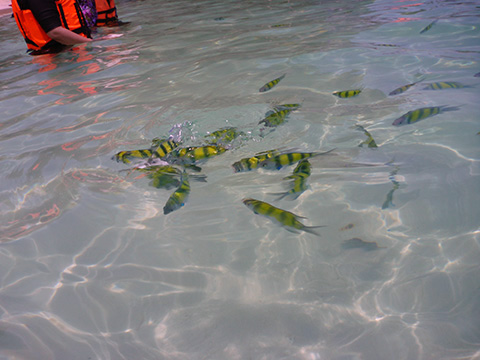 ボートが多い割りには水は澄んでいるけど、それでもほとんど砂地なので魚はほとんどいなかった。