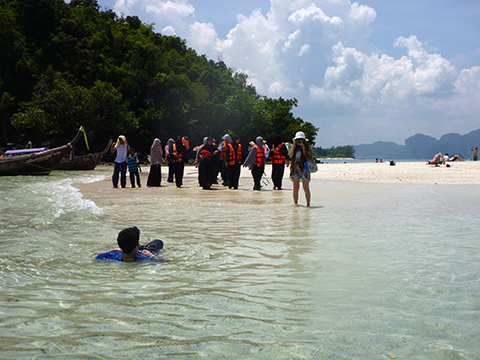 やはり今回もすでにたくさんのロングテールボート、モーターボートが接岸しており満ち潮で狭くなった砂浜は人があふれていた。