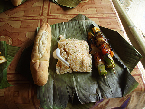 カオパットはバナナのはにくるんで持ってきたようだが、前回のカヤッキングのときと同じように串焼きは我々が洞窟にいる間にここで焼いたらしい。