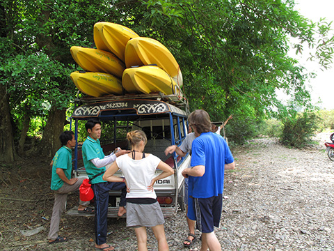 9時過ぎに屋根にカヤックを積んだソンテウがやってきた。