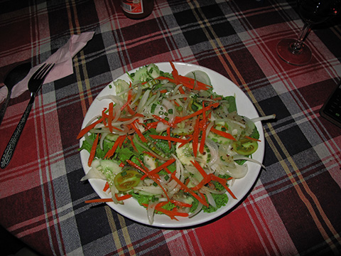 カヤックをやっているときからタムマークフンでビールを飲みたかったのでホテルに戻る途中の、西日の当たっていない店に入りビアラオダムとタムマークフンをプリック(唐辛子)5つで注文。