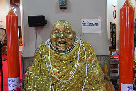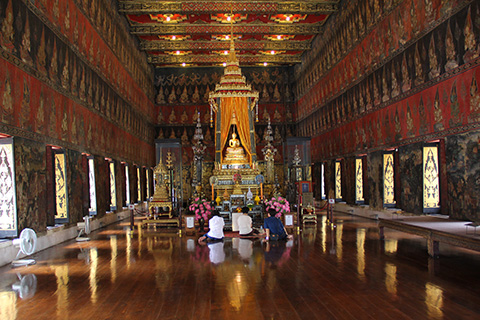 館内にはタイ人おばさんが3人、例の横すわりで金色の仏像に祈りをささげていた。