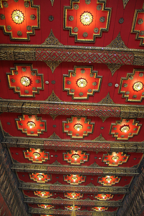 壁の仏教画は一部はげかけていてもうちょい努力が必要だが磨きこまれた床と赤い天井のコントラストがよかった。