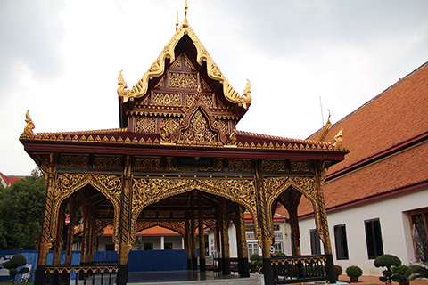 プラアーティットからカオサンへ通り抜けられるとして有名な寺なのだがやってくるのがいつも日暮れ間近で中に入ることができず今まで見学したことがなかったからである。