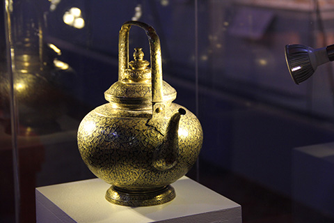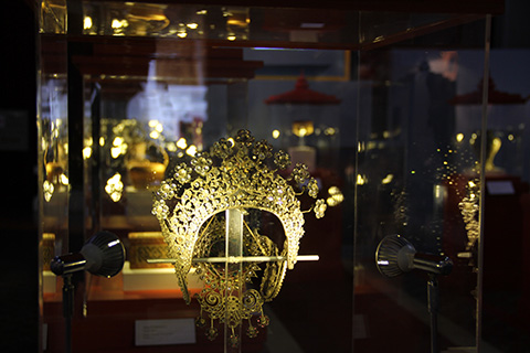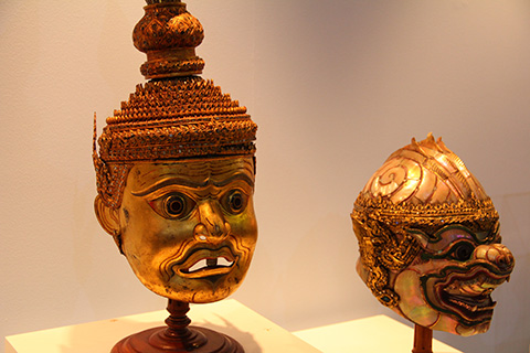 その右手の建物には金のティアラやティーポット、つぼ、ラーマーキエンに使われるような仮面がライトアップされて置かれており、正面の肖像画からしてここは現王妃がなんらかの支援をしている美術品らしかった。