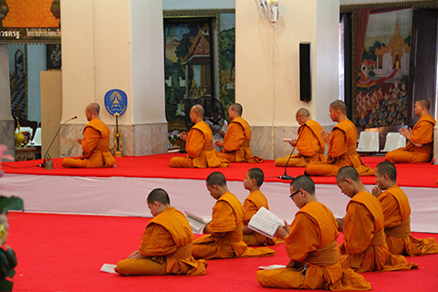 ちょうど祈りの時間だったようで、マイクを通して流れてくる偉い坊さんの声にしたがい50人くらいの僧侶がお経を唱和していた。