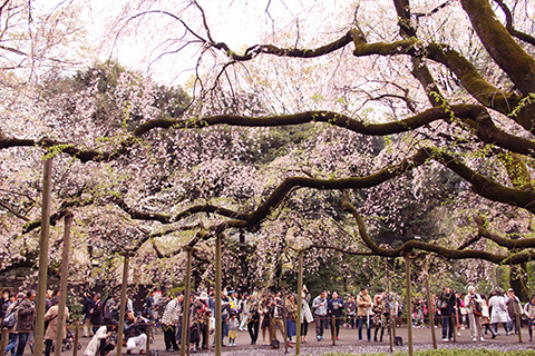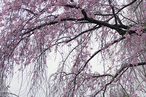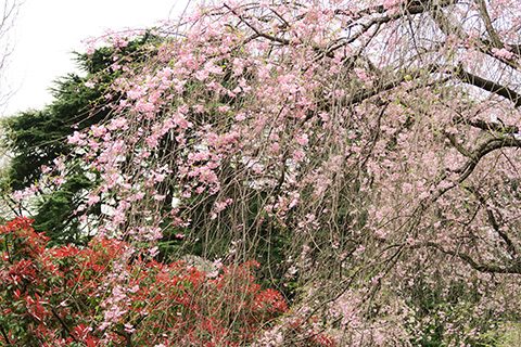 入り口でもらったパンフレットによるとここはしだれ桜で有名なんだそうで、進んで行った先にあった大きなしだれ桜の周りではたくさんの人たちがそれぞれにカメラを構えていた。