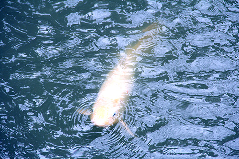 雨が上がりちょっと蒸し暑くなってきた玉砂利の遊歩道を進んでいく。