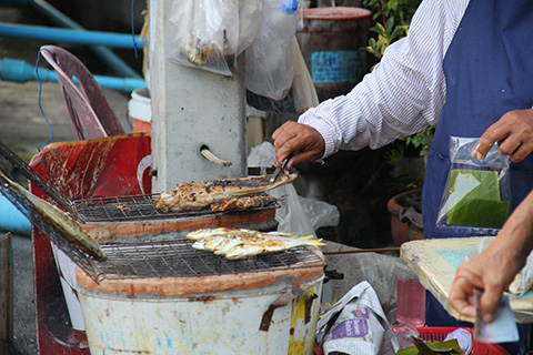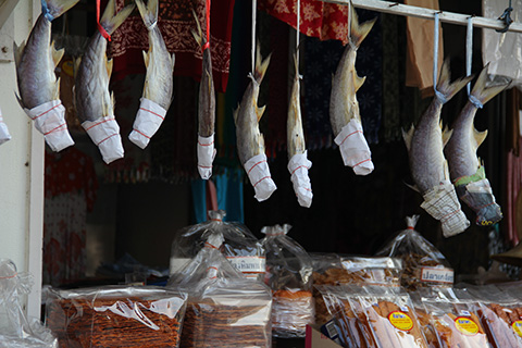 通常タイのタラートナームは川や運河沿いに発達していることが多いのだが、ここは海に面した漁村だったのかもしれない。
