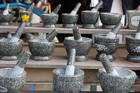 他のタラートと違うところがあるとすれば店々にソムタムを作るためのクローク(石臼)が目立つのと集落を抜けた先に海が広がっているくらいである。