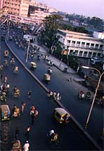 リキシャーが道の中央まで出て走っているのでそれをけ散らそうとするBaby Taxiやそれをまたけ散らそうとする車が常にクラクションを鳴らしている。