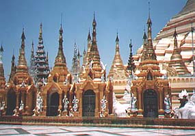 境内はストーパ(ミャンマーでもこういうのだろうか)を取り巻くように石畳が敷かれている。そこを裸足で歩くとものすごく熱い。