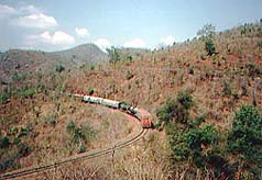 タウンジ⇒タージー間を走る列車がのろのろと山道を登っているのを見かけた。