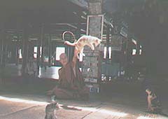 小道具である輪の中を猫がジャンプしてくぐる。そのたびに坊さんが写真の用意はできてるかというので3,4枚も撮ってしまった。