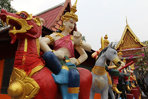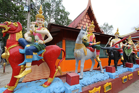 舐められないようそいつらにガンを飛ばして威嚇しつつ奥に進んでいくとそちらには馬や水牛に跨がった天上人らしき像が並んでいた。